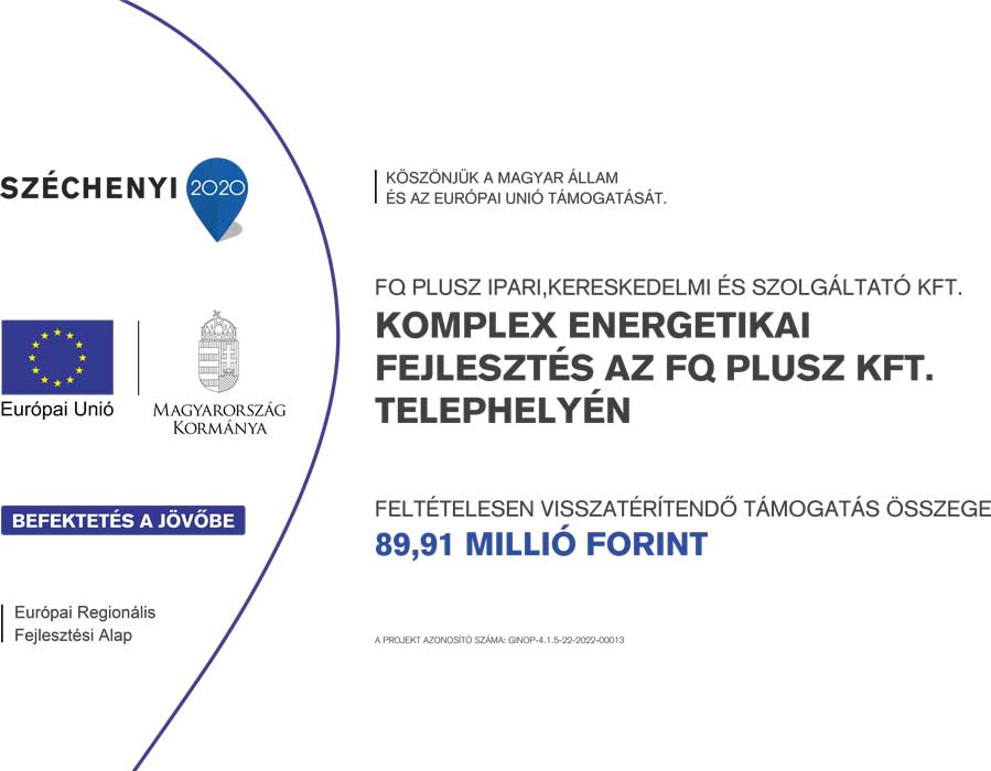 A projekt címe: Komplex energetikai fejlesztés az FQ PLUSZ Kft telephelyén