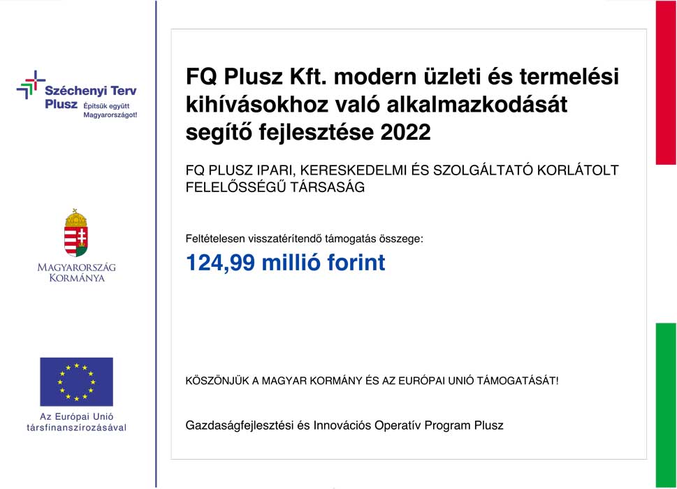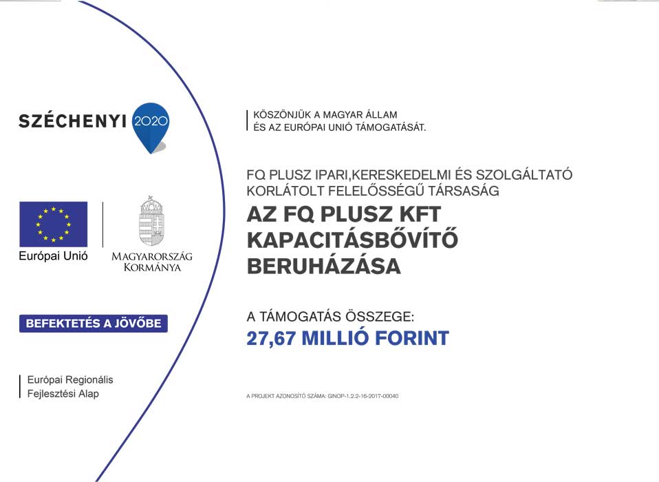 A projekt címe: Az FQ Plusz Kft. modern üzleti és termelési kihívásokhoz való alkalmazkodását segítő fejlesztése