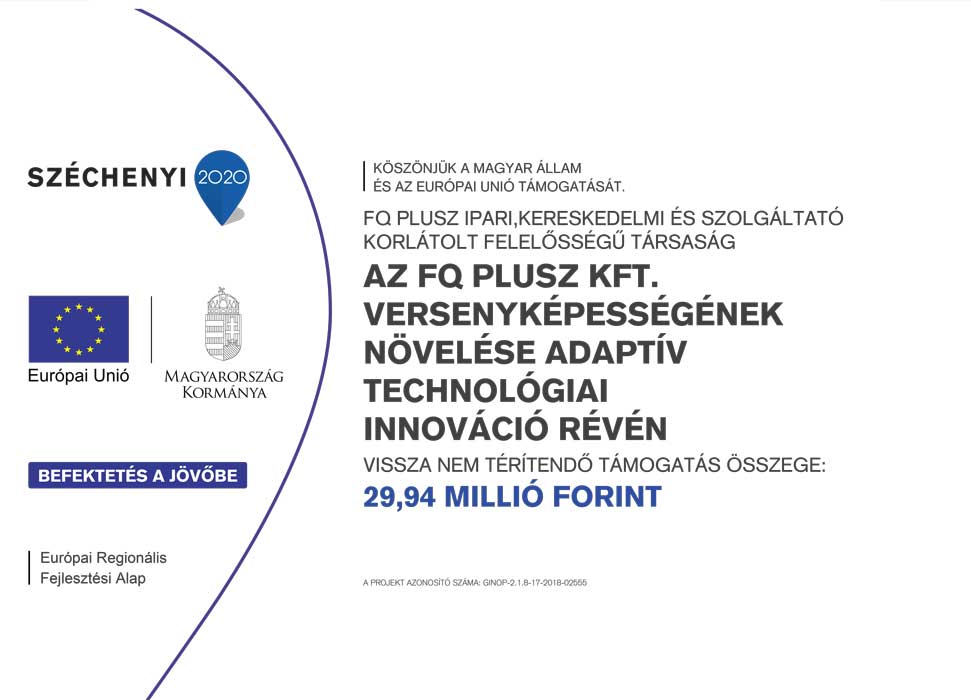 A projekt címe: Az FQ Plusz Kft. versenyképességének növelése adaptív technológiai innováció révén